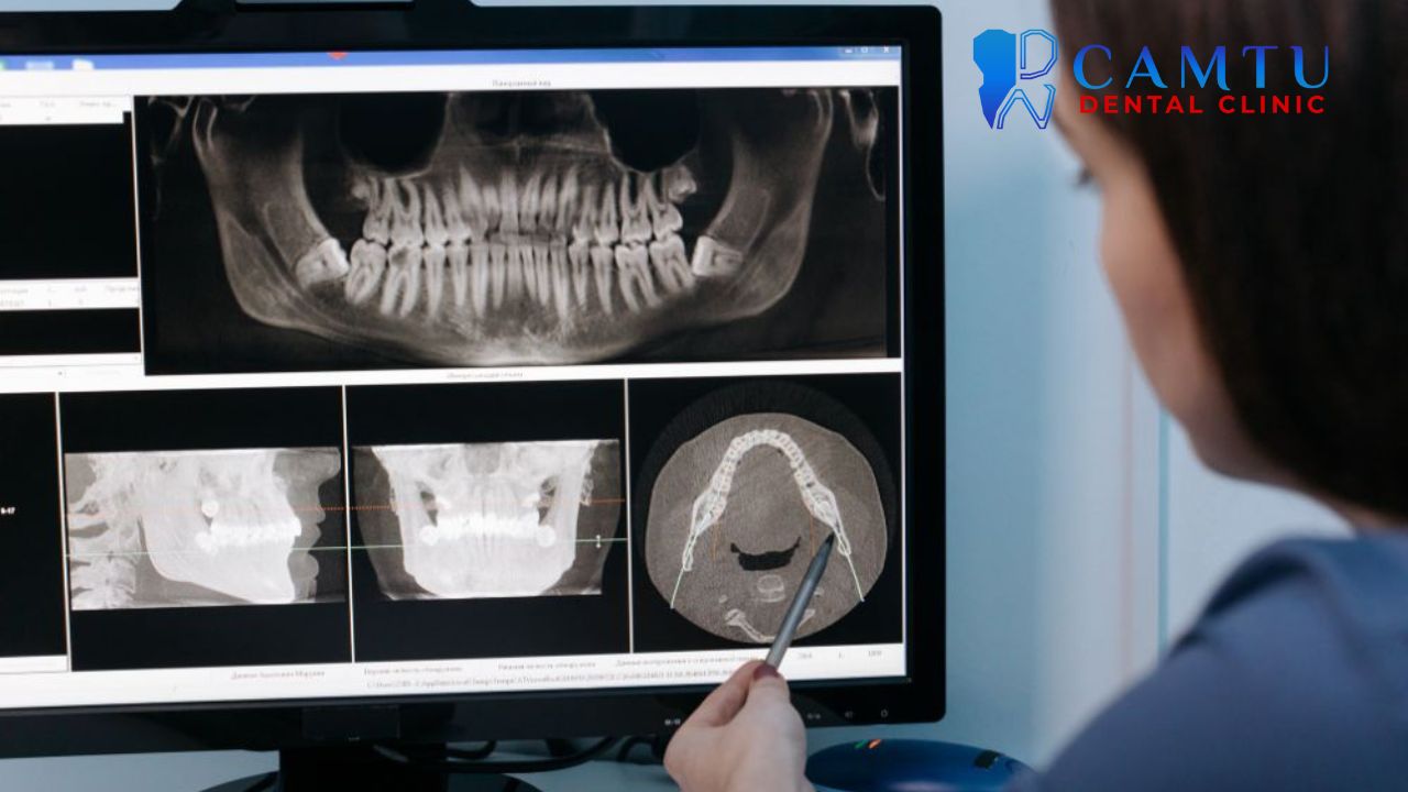 Bác sĩ sẽ kiểm tra tổng quát tình trạng răng miệng, nướu và sức khỏe xương hàm. Sau đó, khách hàng được chỉ định chụp phim CT Conebeam để có hình ảnh 3D rõ nét về cấu trúc xương, xoang hàm và vị trí mất răng.